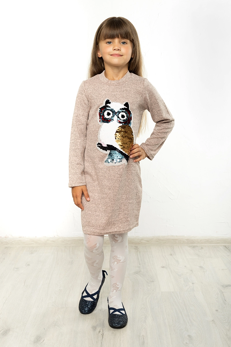 Детское очаровательное платье прямого покроя с длинным рукавом, спереди украшено пайетками перевертышами. Замечательная модель для повседневной носки.