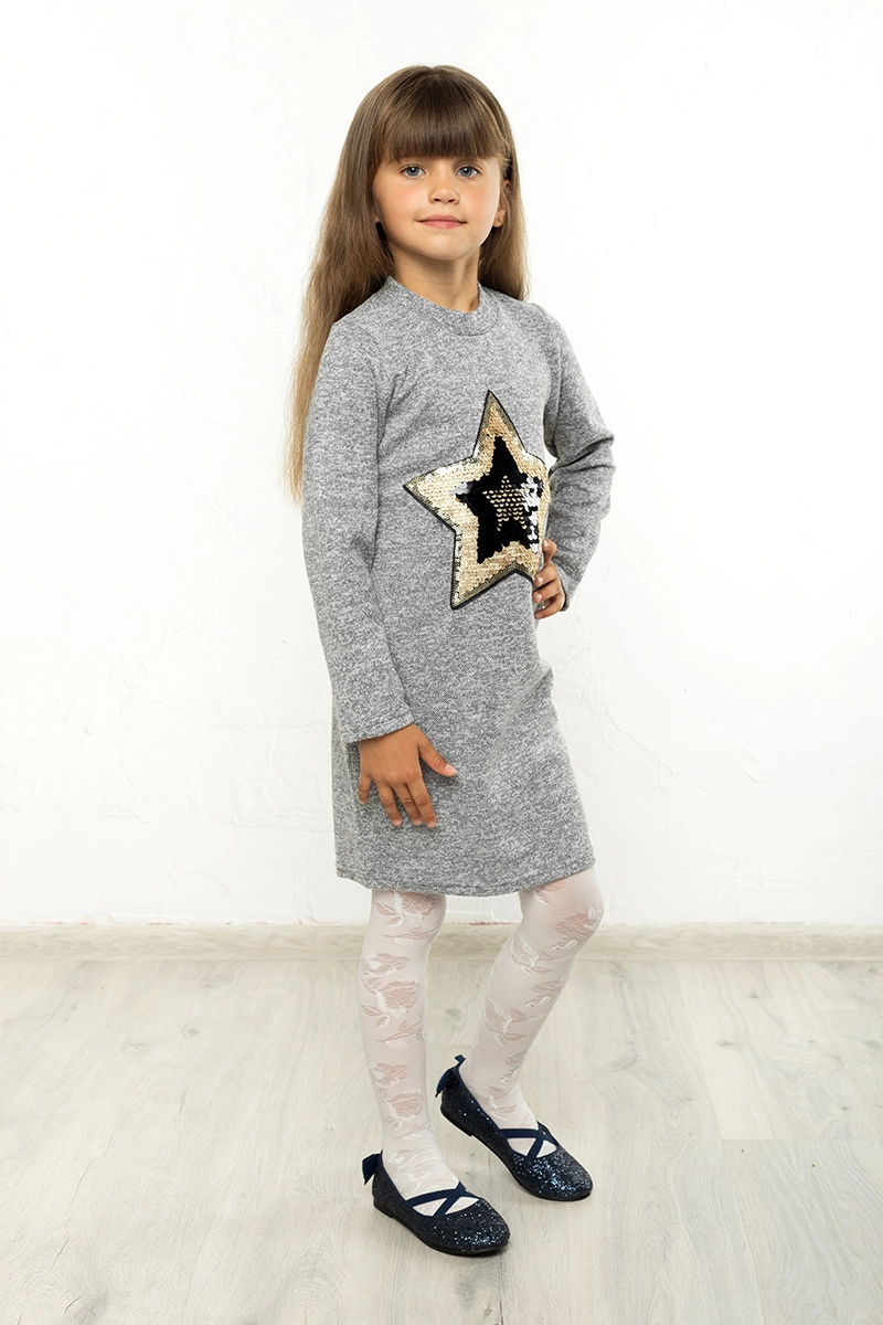 Детское очаровательное платье прямого покроя с длинным рукавом, спереди украшено пайетками перевертышами. Замечательная модель для повседневной носки.